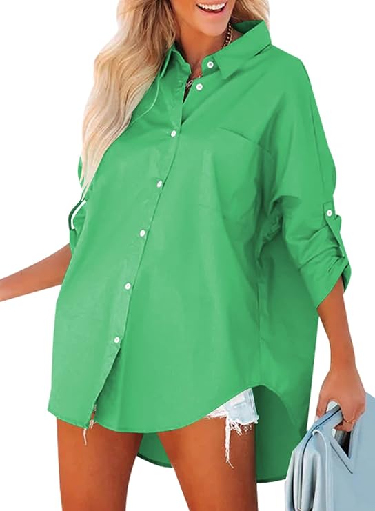 Womens Casual Button Down Shirts Long Sleeve Oversized Tunic Blouses Tops