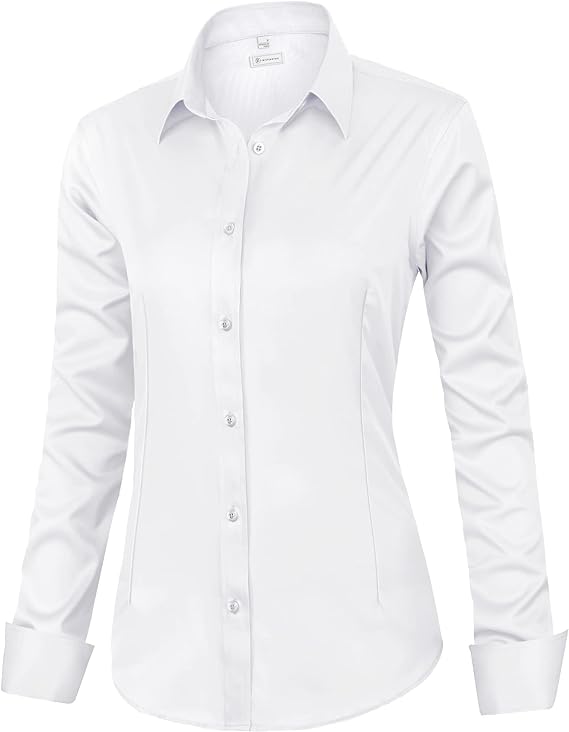 Womens Classic-Fit Dress Shirts Long Sleeve Button Down Wrinkle-Free Stretch Solid Casual Work Office Blouse Top