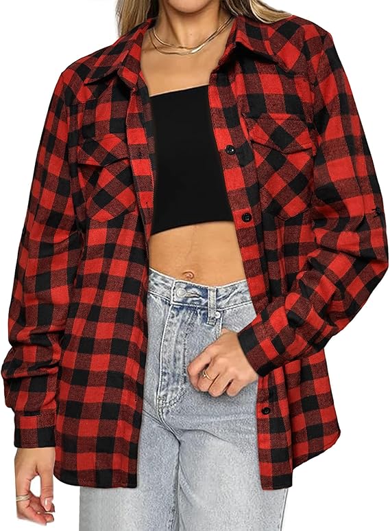 Plus Size Flannel Shirts for Women 2024 Oversized Boyfriend Plaid Shirt Casual Long Sleeve Button Down Tops Blouse