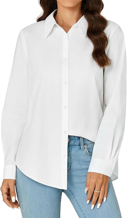 Women’s Button Down Shirt Long Sleeve Dress Shirt Collared Cotton Casual Work Blouse Top