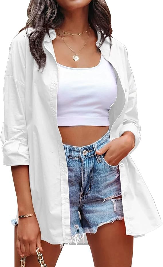 Womens Oversized Button Down Shirts Long Sleeve Loose Fit Work Dressy Blouses Tops