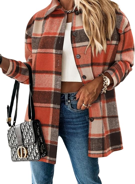 Women's Brushed Plaid Shirts Long Sleeve Flannel Lapel Button Down Cardigan Boyfriend Shacket Jacket Coats