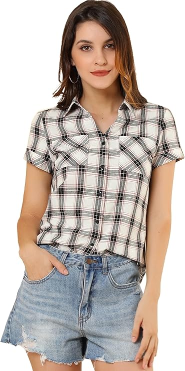 Women's Cotton Classic Button Down Western Plaid Shirt