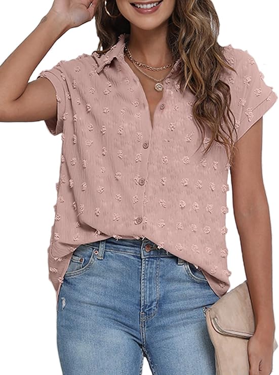 Womens Summer Tops 2024 Waffle Knit Button Down Shirts Casual V Neck Short Sleeve Shacket Jacket Dressy Blouses