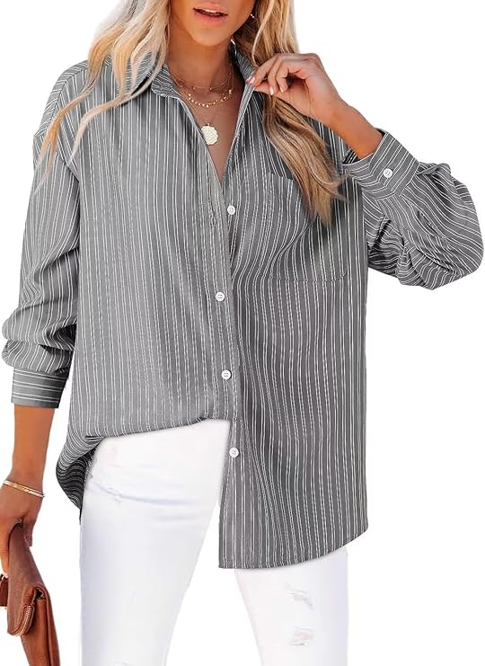 Oversized Button Down Shirts for Women, Dressy Casual Long Sleeve Blouses Summer Tops Tunics