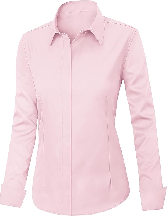 Women's Button Down Shirts Classic Fit Dress Shirt Wrinkle-Free Strech Solid Work Office Blouse