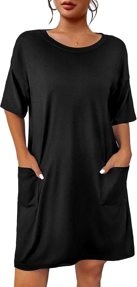 Sleep Shirts for Women Nightgown Short Sleeves T shirt Night Dress Round Neck Womans Nightgown with Pocket S-XXL