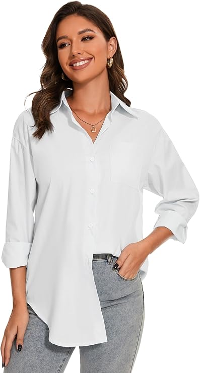 Button Down Shirts for Women Long Sleeve Oversized Boyfriend Shirts Cotton Wrinkle Free Work Blouses