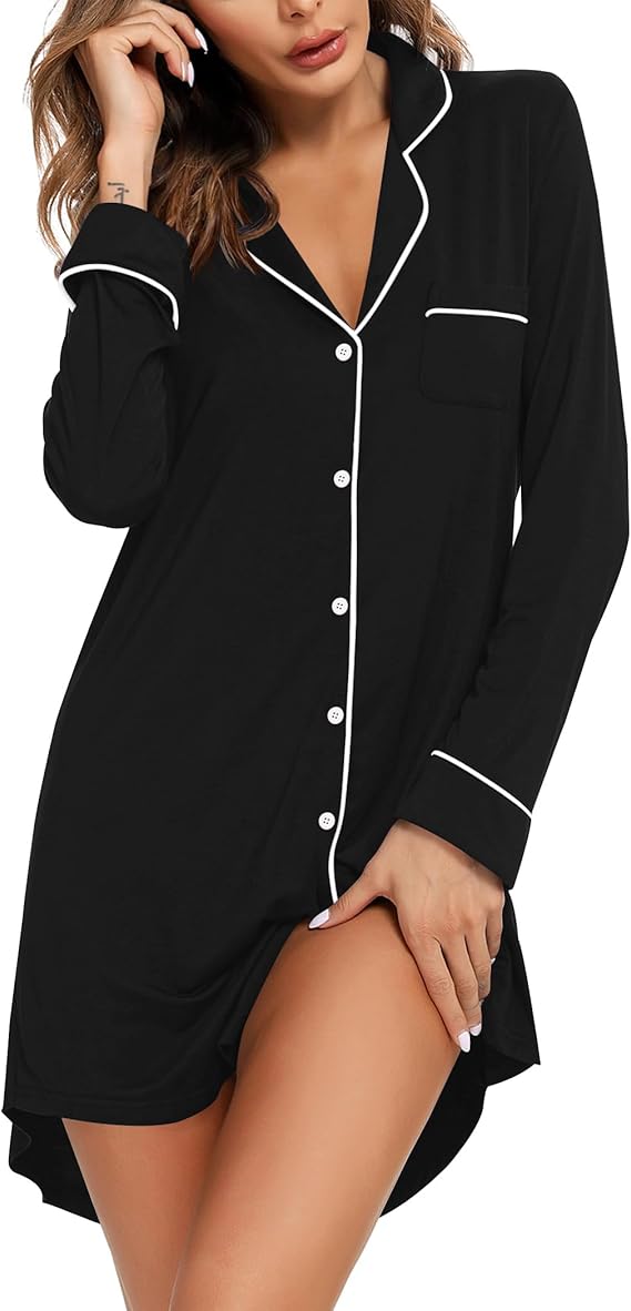 Nightgowns for Women Long Sleeve Nightshirt Button Down Sleepshirt Nightdress Boyfriend Sleepwear S-XXXL